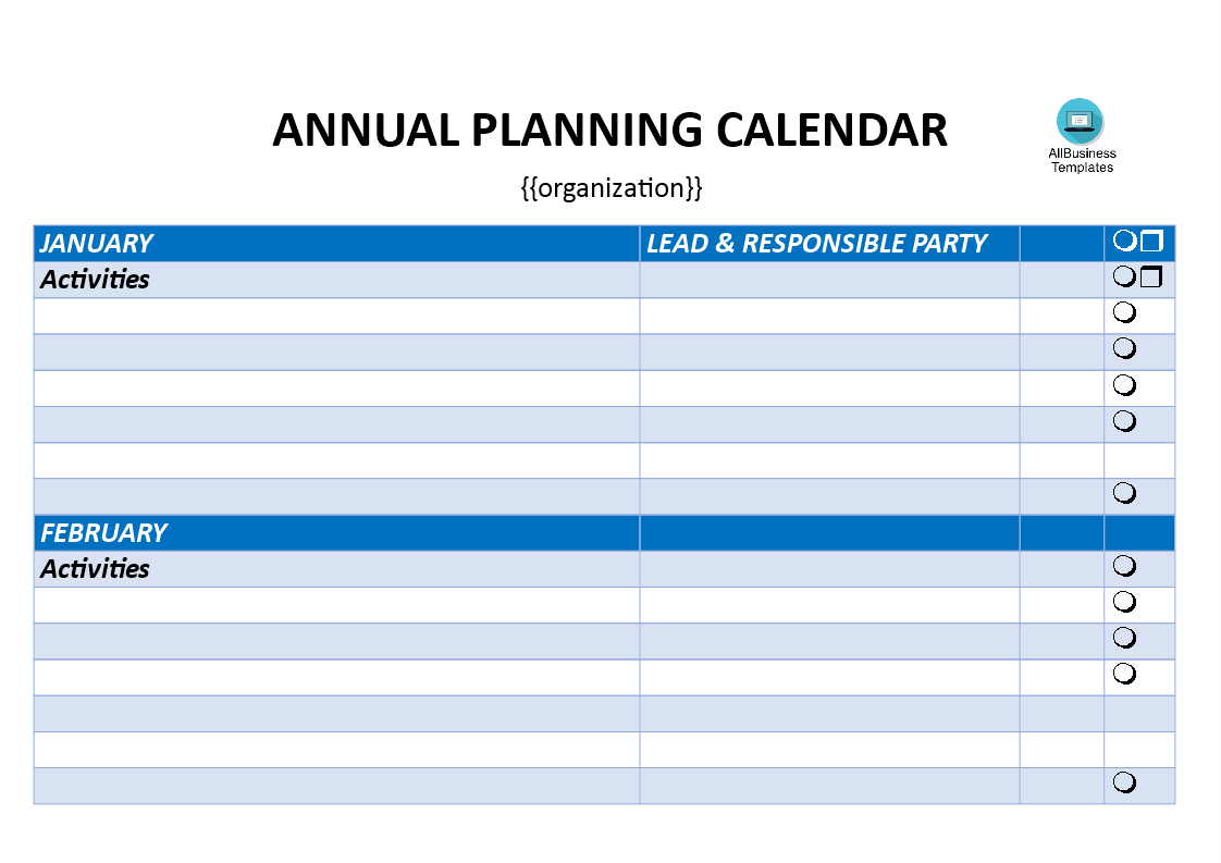 Annual Planning Calendar Template in Google Docs, Word, Pages, PDF