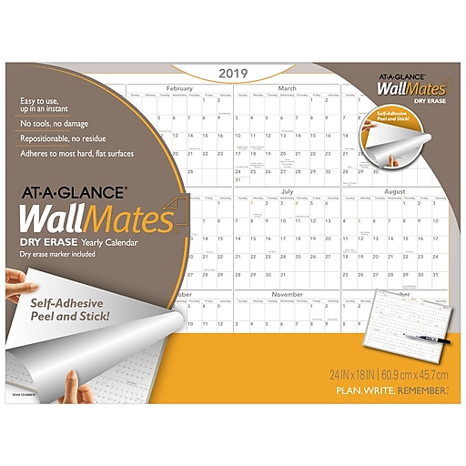 2019 ATAGLANCE® WallMates® SelfAdhesive DryErase Yearly Calendar