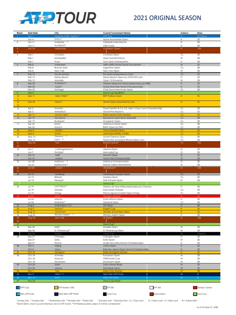Atp Tour Calendar Customize and Print