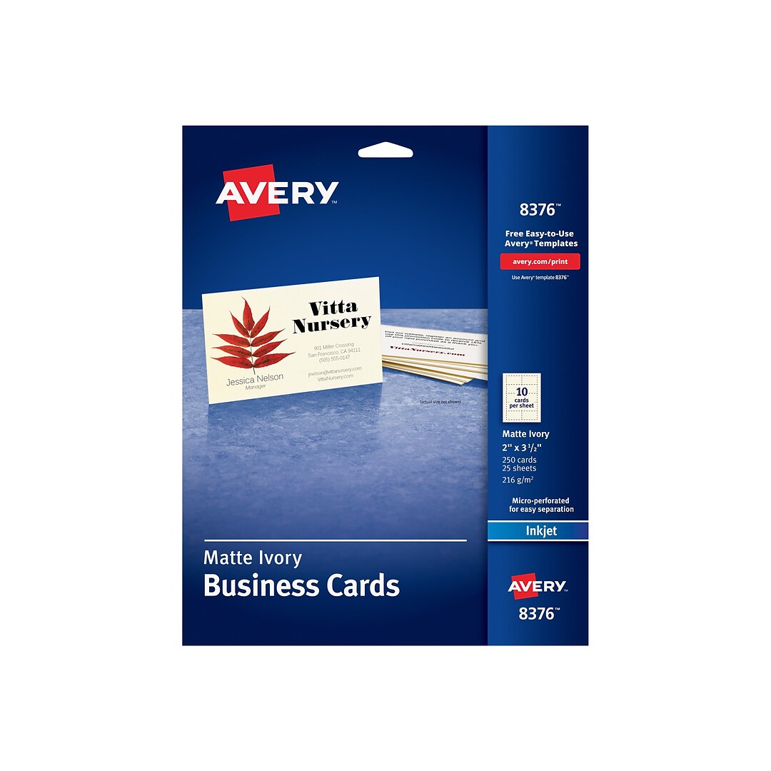 Avery 08376 Perforated Business Cards 2 X 3 1 2 Rectangle