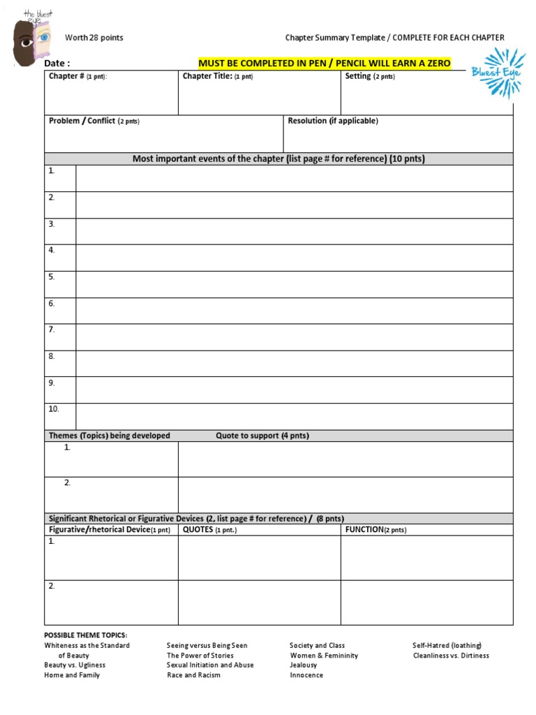 chapter summary template the bluest eye