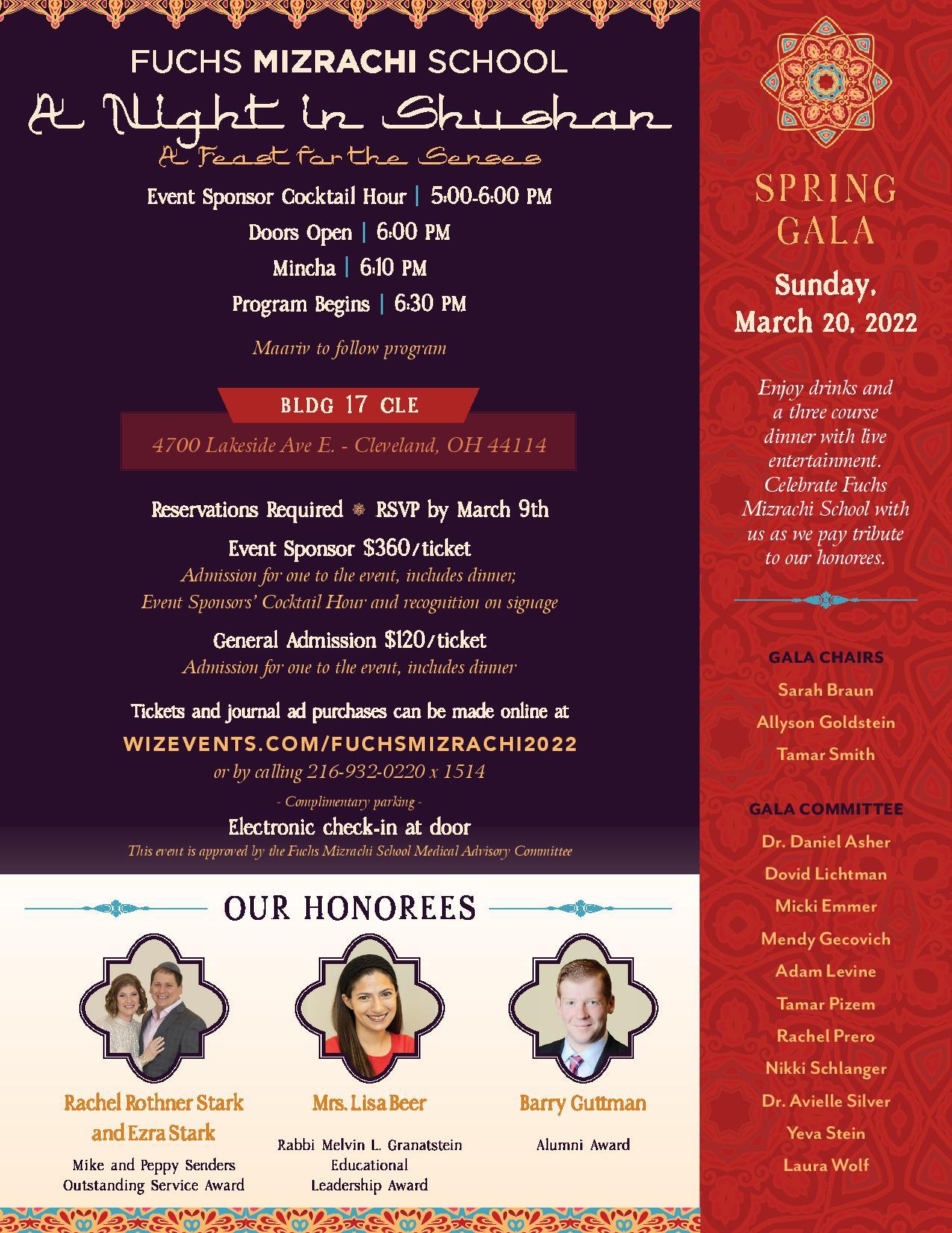 Fuchs Mizrachi Spring Gala, Sunday, March 20th