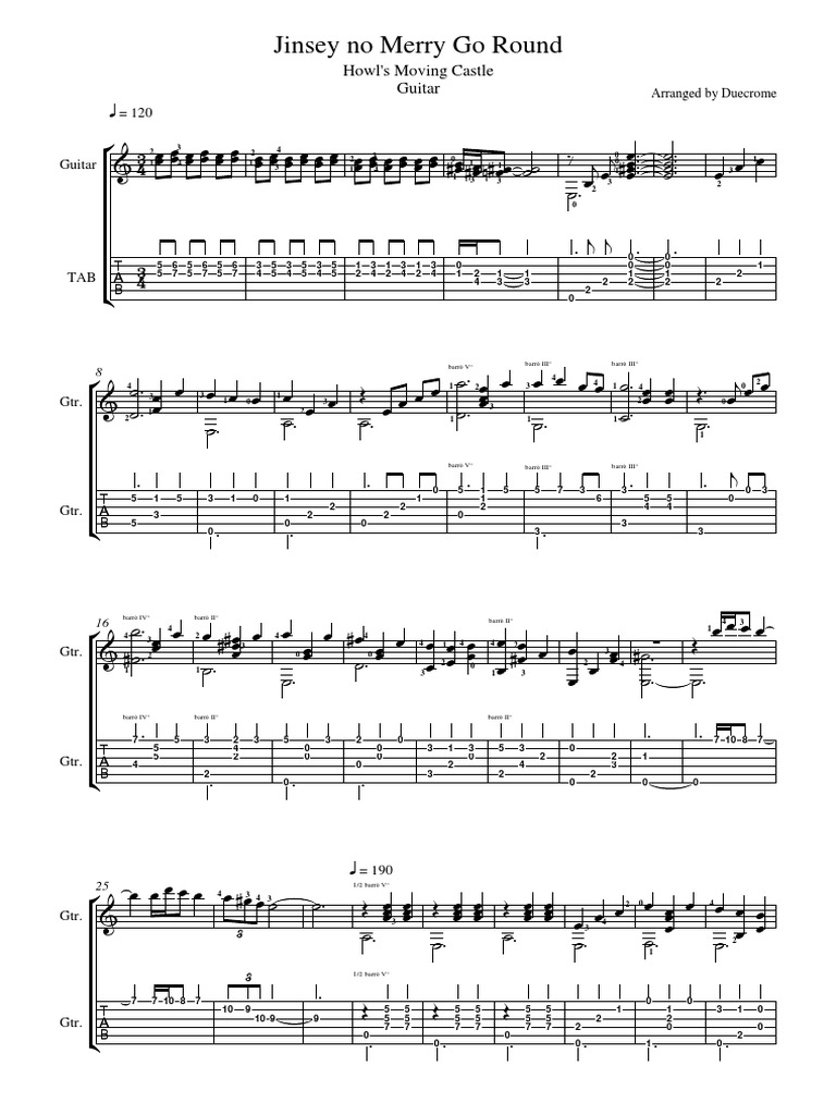 Howl's Moving Castle Guitar Tab/Sheet Music