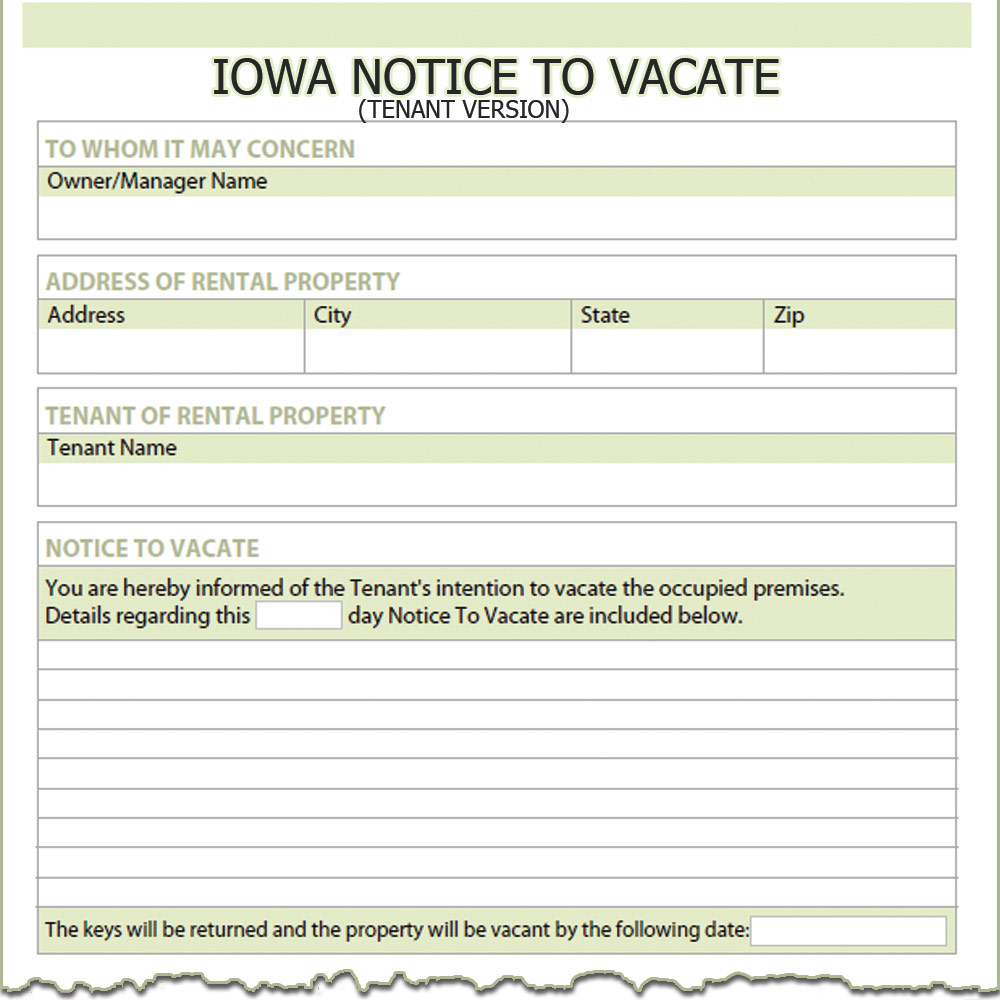 If the rent is due on the first day of the month, the tenancy can only be ended on the first. Web iowa 30 day notice to vacate form category: Ad edit, download, & print. Create your 30 day notice to vacate iowa now. Iowa notice to vacate can be used when a tenant in iowa wants to vacate the rental. Ad don't write an eviction notice from scratch. Residential includes a house, apartment, or condo. Create your eviction notice letter today. Web the notice must be given at least 30 days before the next time rent is due. Web tenants can use the iowa tenant notice to vacate form to inform landlords and property managers of their intention to vacate the rental property at least 30 days before they.