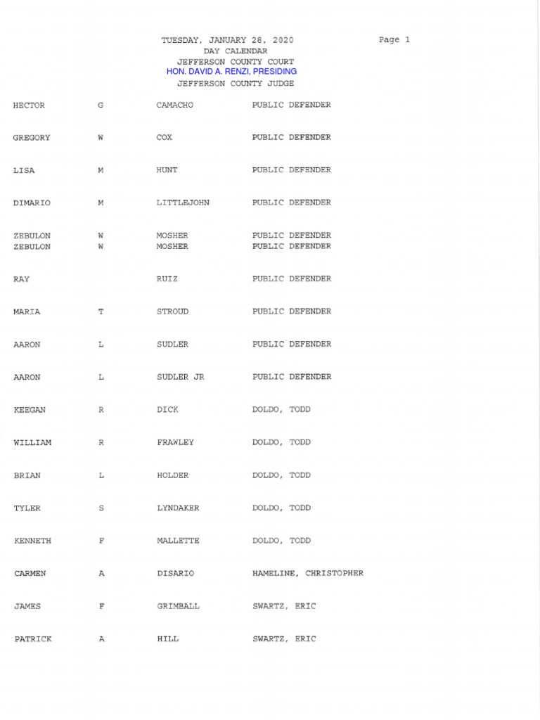 Jefferson County Court calendar Jan. 28, 2020