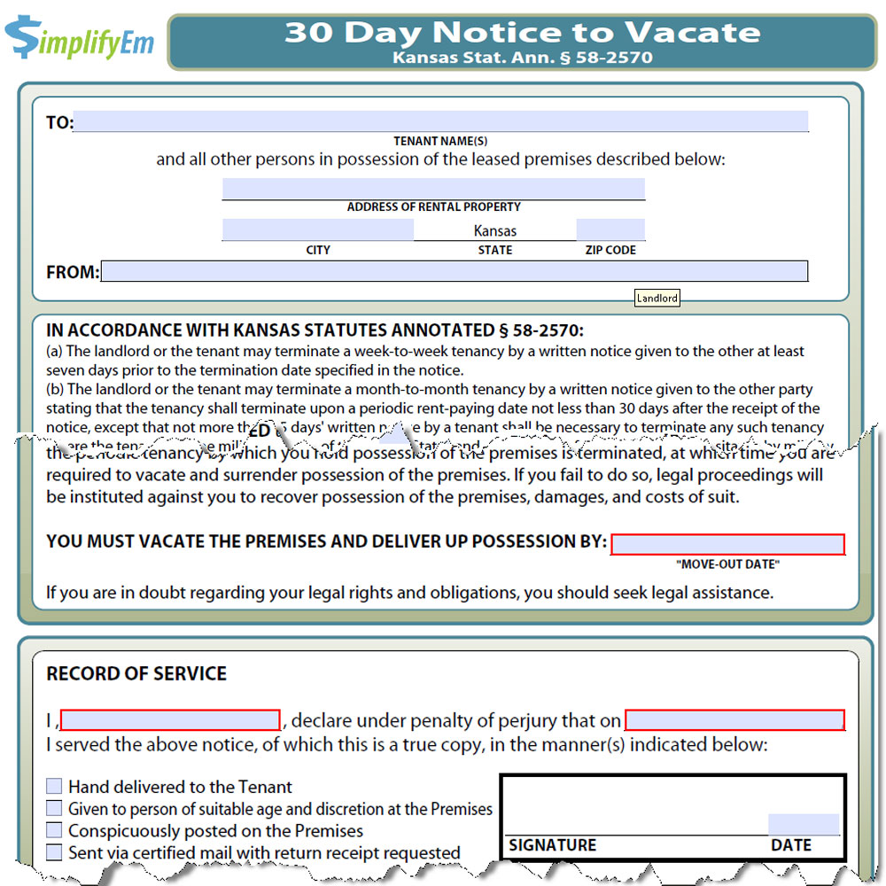 Web Kansas Notice To Vacate Forms Should Not Be Confused With Kansas Eviction Notices.