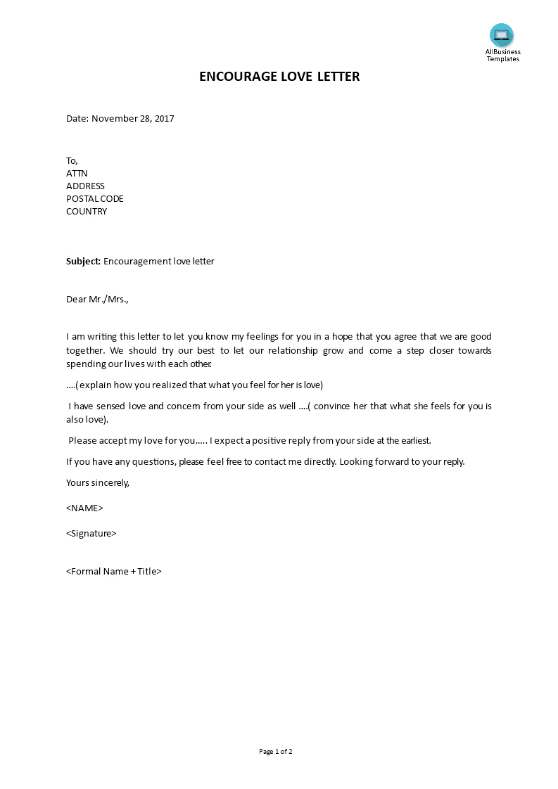 Encouragement Love Letter Templates at