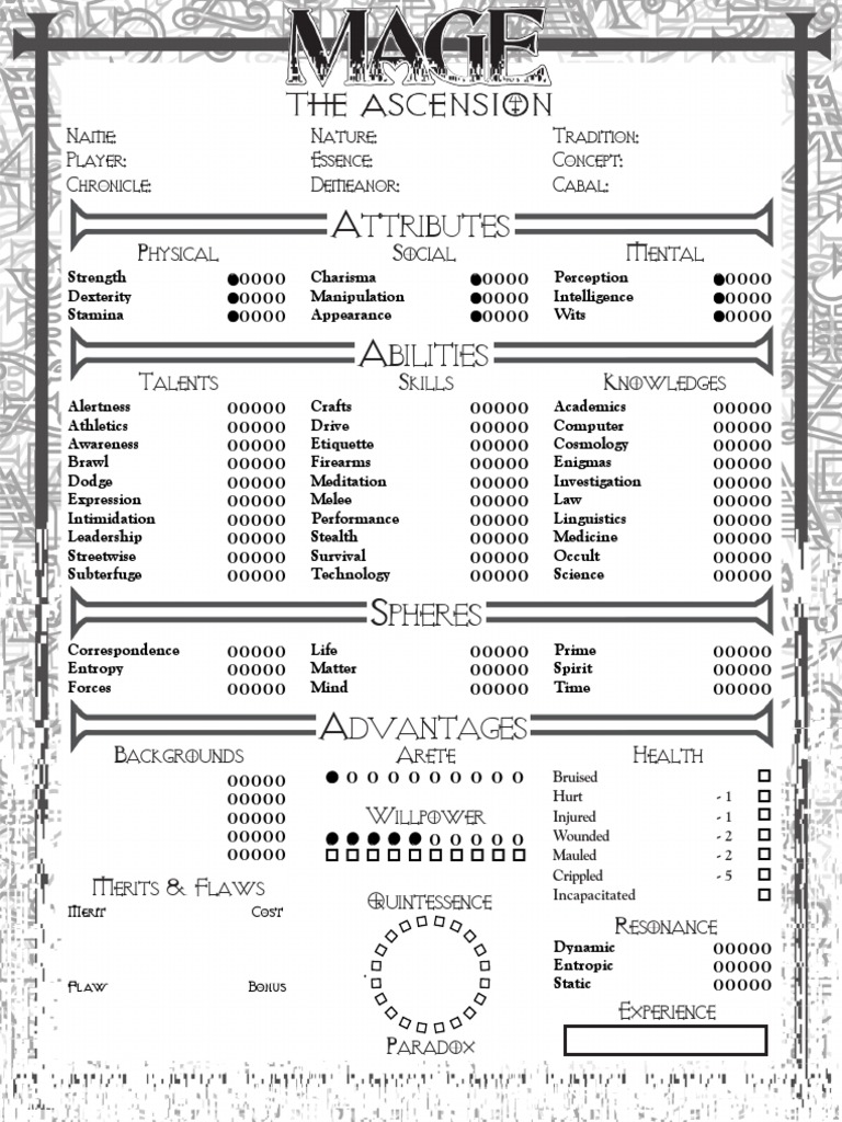 Mage Ascension Character Sheet - Web mage the ascension 20th anniversary edition character sheet ________________ooooo *7c;