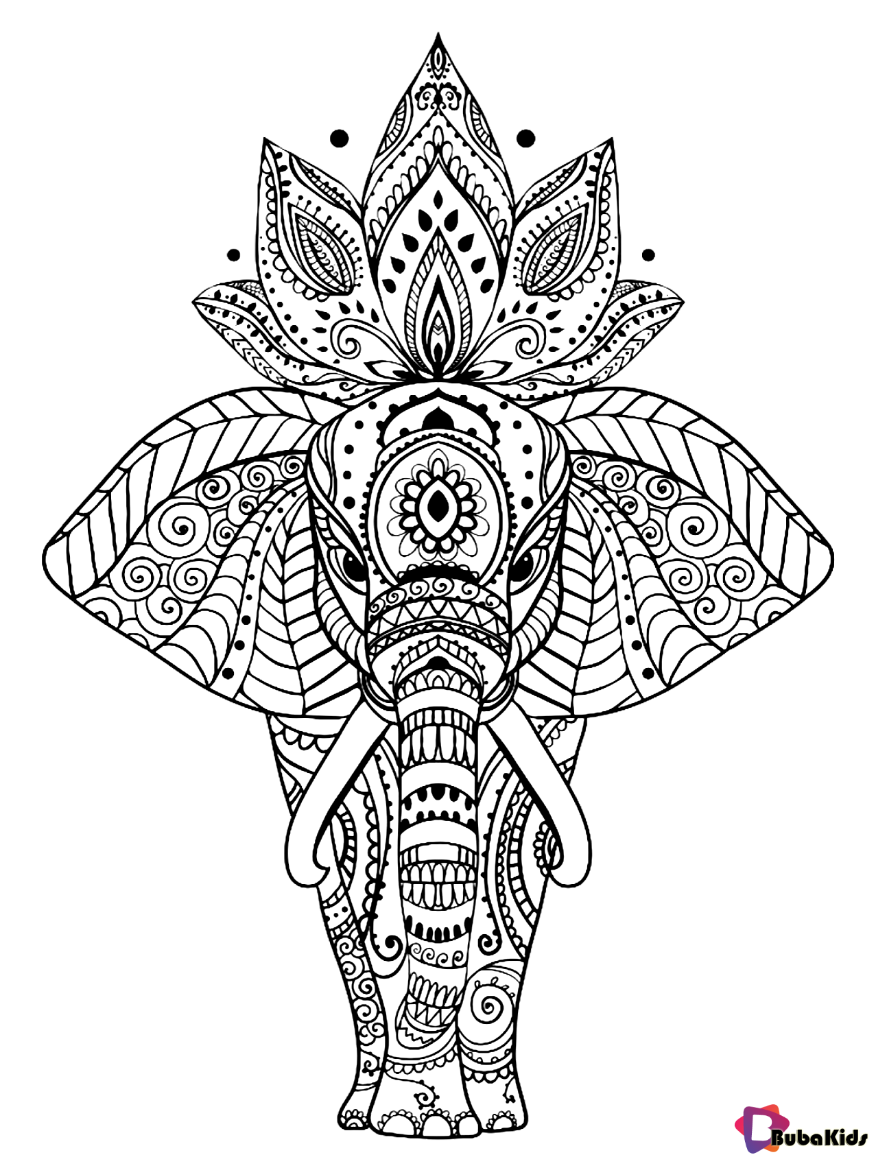 Animal elephant mandala coloring page for kids and adults