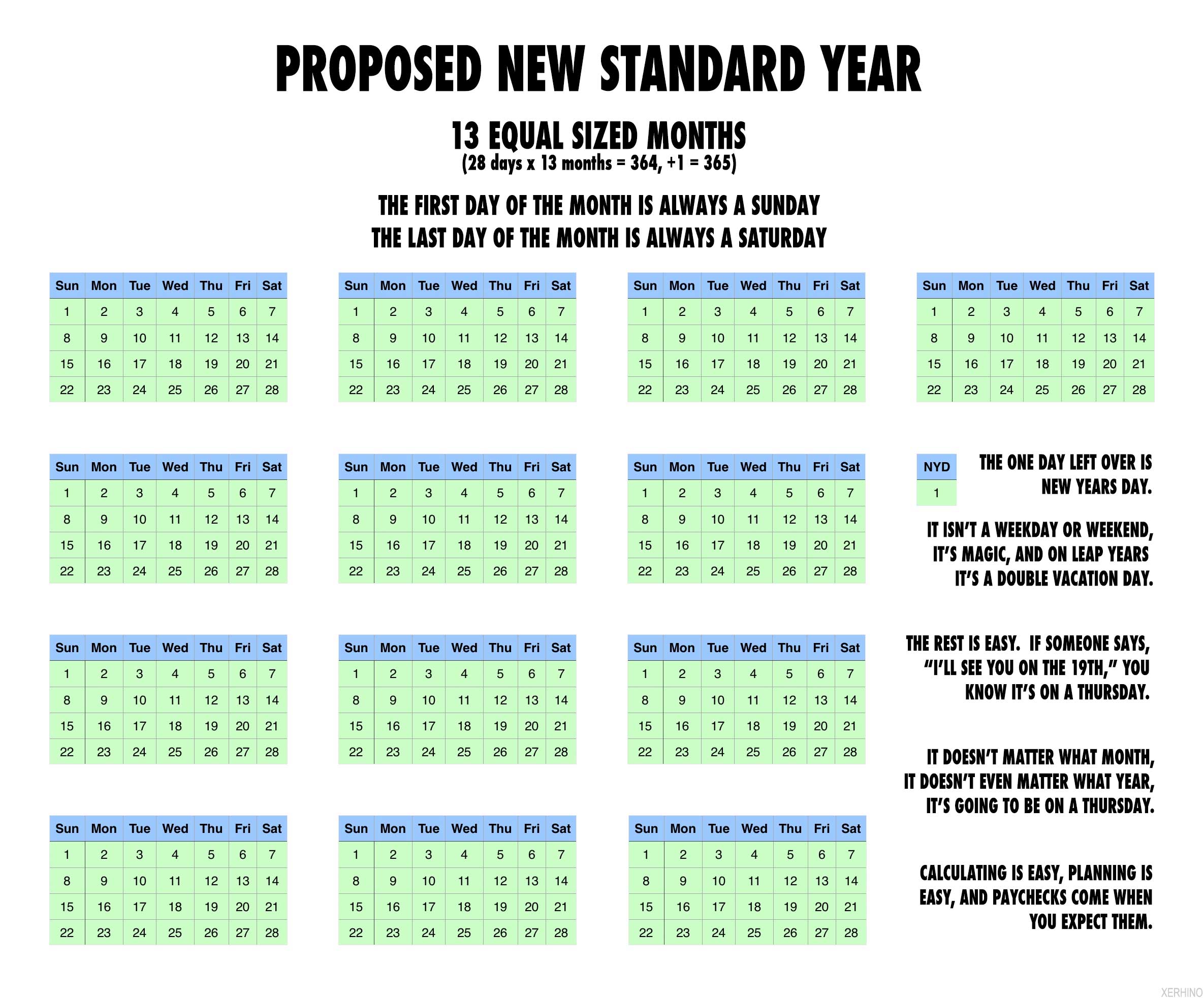 Wie wäre es mit einem Kalender mit 13 gleichlangen Monaten? Alte neue
