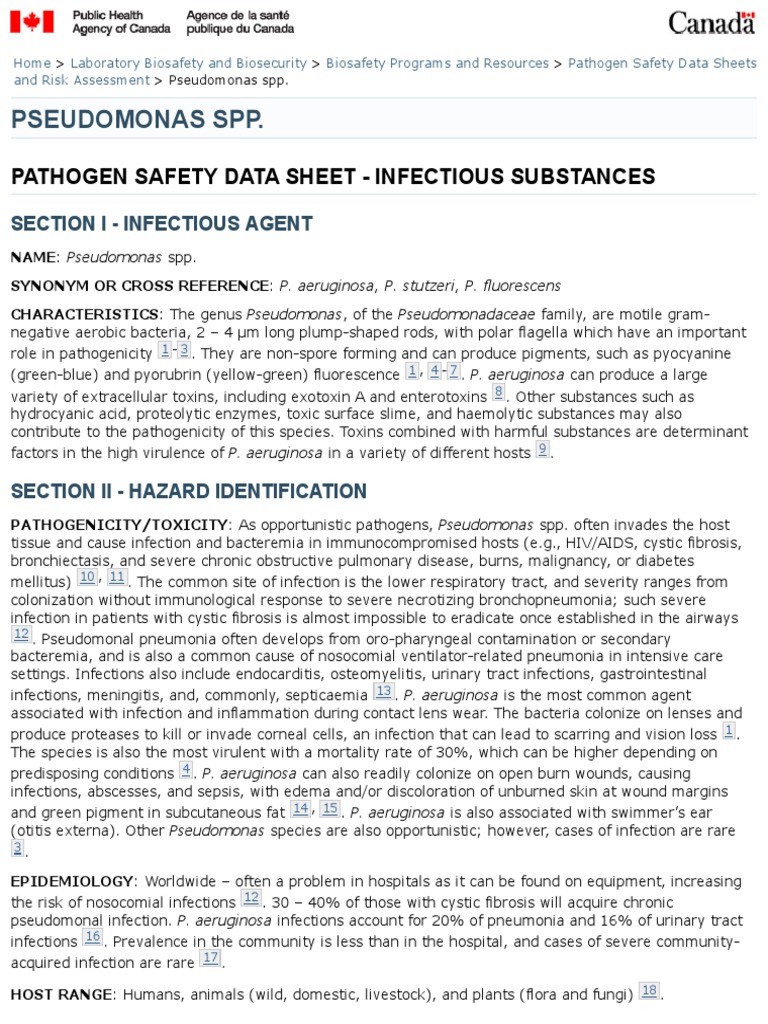 Pseudomonas Spp. Pathogen Safety Data Sheets Public Health Agency