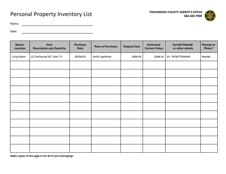 Taking the time to complete a comprehensive home inventory also means that you’ll get your claim settled quickly and get your life back to. How much do i need? This form is beneficial for keeping accurate records for insurance companies or estate planners. Web the most used method by insurance companies to calculate the value of personal property that has depreciated is to subtract the estimated depreciation (the dollar amount the property has decreased) from the current cost. Get all the coverage you need in one place and save more of your money for enjoying everything missouri has to offer. Web having a personal property inventory in place can help you determine if you have adequate homeowner’s coverage. Easily fill out pdf blank, edit, and sign them. A good home inventory includes a detailed list of your possessions, including receipts, descriptions, and photos of your home contents. Document/list and value every item. Web personal property inventory guide: