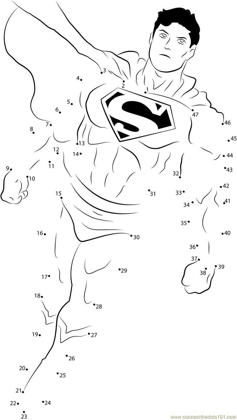Courageous Superman dot to dot printable worksheet Connect The Dots