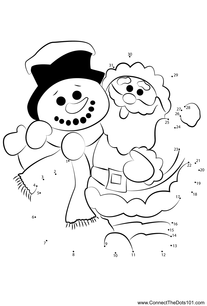 Sanata with Snowman dot to dot printable worksheet Connect The Dots