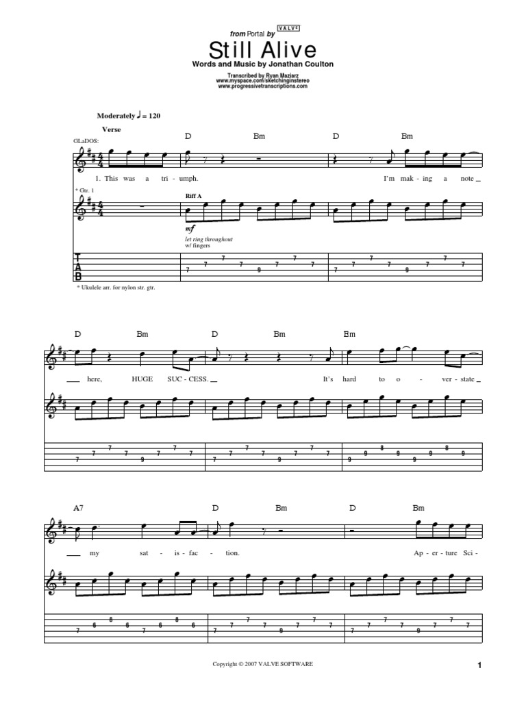 FilePortal W32 Still Alive Sheet 1.png Video Game Music