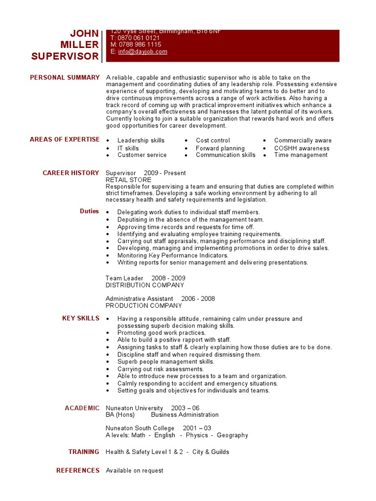 Supervisor Resume Examples (Supervisory Experience on CV)