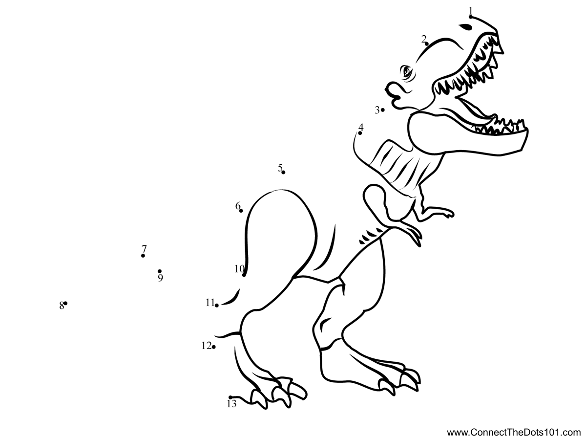 Cartoon Tyrannosaur dot to dot Free Printable Coloring Pages