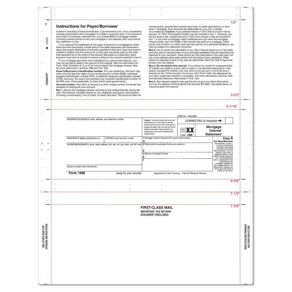 81/2" x 11" Z Fold 1098 Mortgage Tax Forms (Box of 500)