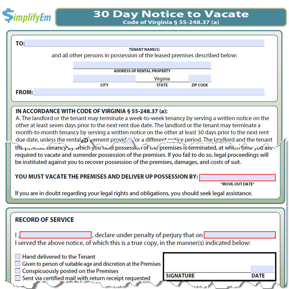 Virginia Notice to Vacate